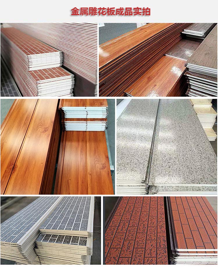 【品名】金屬雕花板 【材料】表面:鍍鋁鋅彩鋼 夾層:硬質(zhì)發(fā)泡聚氨酯 底層:鋁箔防腐層 【尺寸】寬度:383mm 厚度:16mm/20mm 長度:支持定制生產(chǎn) 2- 6米之間方便運輸 【安裝】:藏釘式子母扣 拼裝方式 |