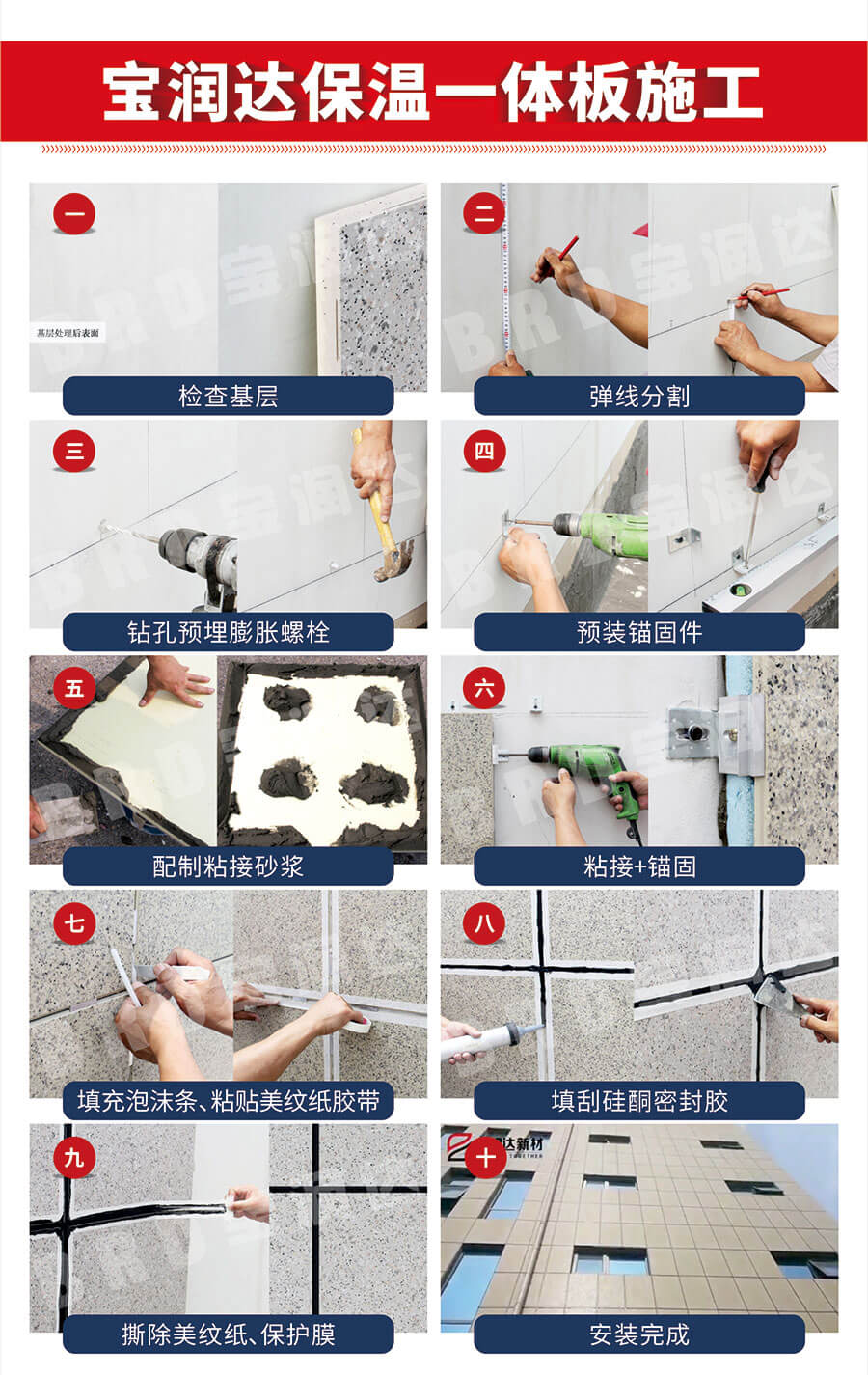 寶潤(rùn)達(dá)一體板保溫芯材采用防火巖棉板,真金板,XPS擠塑板,EPS泡沫板,石墨聚苯板等厚度2-10公分可選