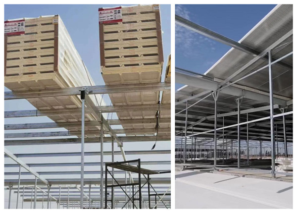 國(guó)務(wù)院辦公廳2020年9月14日發(fā)布的關(guān)于促進(jìn)畜牧業(yè)高質(zhì)量發(fā)展的意見(jiàn)國(guó)辦發(fā)〔2020〕31號(hào)文件中指出要因地制宜發(fā)展規(guī)?;B(yǎng)殖,引導(dǎo)養(yǎng)殖場(chǎng)(戶(hù))改造提升基礎(chǔ)設(shè)施條件,擴(kuò)大養(yǎng)殖規(guī)模,提升標(biāo)準(zhǔn)化養(yǎng)殖水平。搭建大中型規(guī)模的養(yǎng)殖場(chǎng),就對(duì)基建使用的材料有了更高的要求,養(yǎng)殖場(chǎng)對(duì)屋面板要求較高,除了具備遮風(fēng)擋雨的基本功能,耐腐蝕、防火、隔熱、保溫等功能一樣都不能少。如果養(yǎng)殖場(chǎng)屋面板各項(xiàng)性能不達(dá)標(biāo),由于飼料和動(dòng)物糞便等產(chǎn)生的氨氣很快就會(huì)腐蝕屋面,導(dǎo)致生銹漏水,從而需要更換屋面,帶來(lái)人力物力的損失。另外,如果屋面材料保溫、隔熱等性能不夠好,那么冬天或者夏天養(yǎng)殖場(chǎng)就要花費(fèi)更多的保暖或者降溫費(fèi)用,增加養(yǎng)殖場(chǎng)成本,并增大了牲畜患病的風(fēng)險(xiǎn)。由此,寶潤(rùn)達(dá)新材根據(jù)養(yǎng)殖場(chǎng)客戶(hù)的需求,綜合成本實(shí)用性各方面因素,養(yǎng)殖場(chǎng)專(zhuān)用屋面板就此應(yīng)運(yùn)而生。